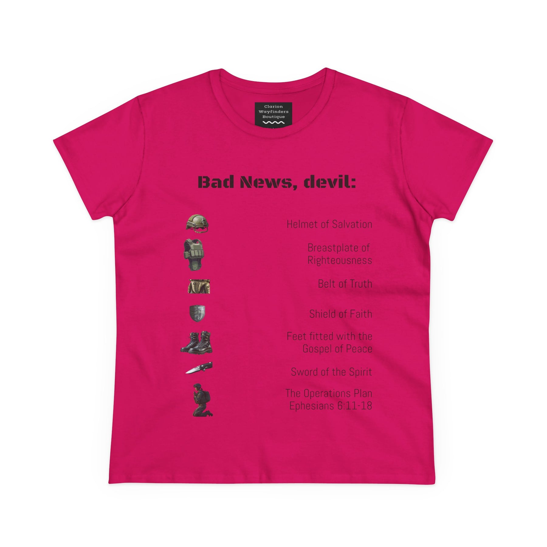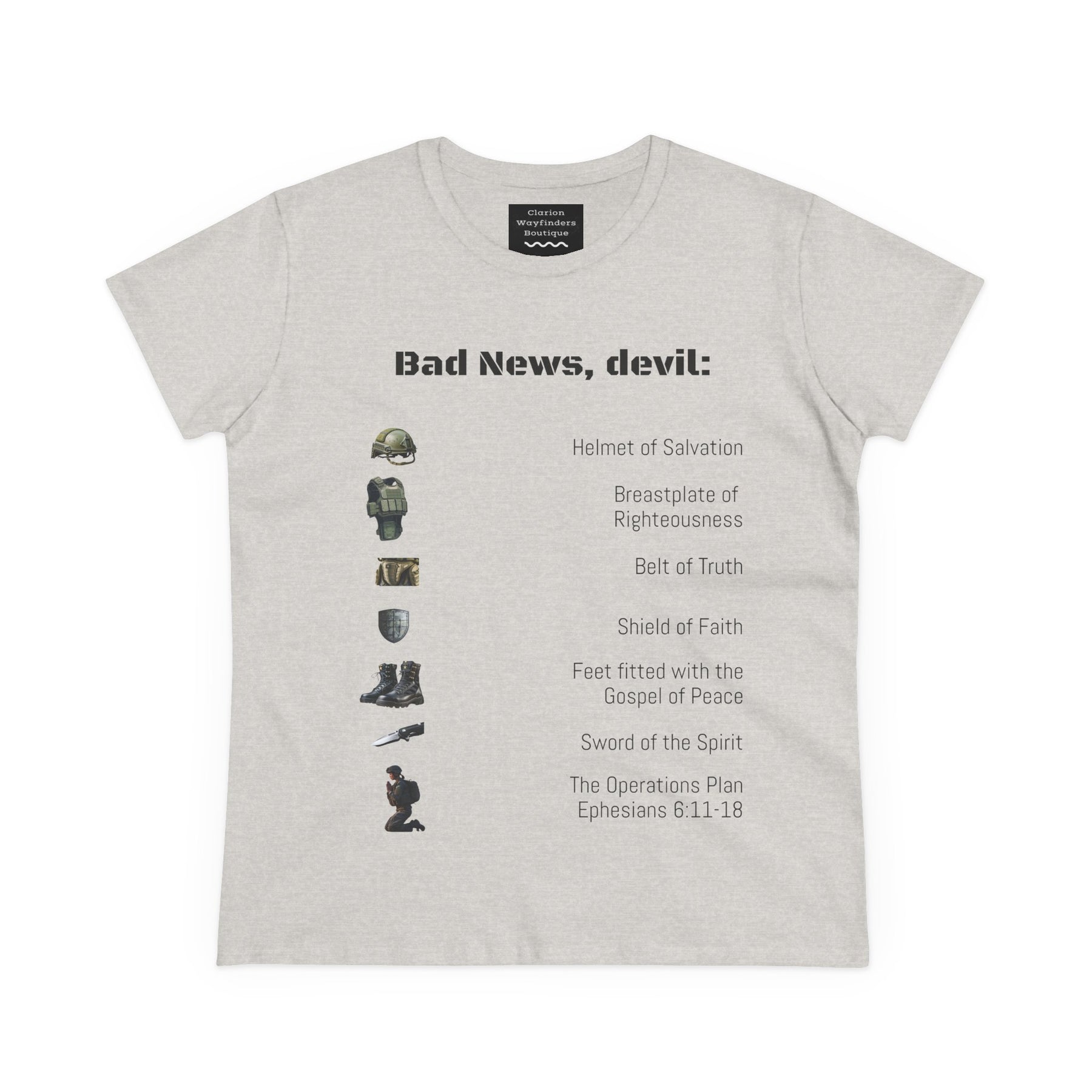 Amor of God Women's Graphic Tee - 'Bad News, Devil' - Casual Wear, Gift for Her, Humor Top, Everyday Fashion, Unique Statement Shirt